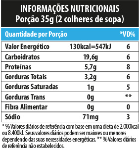 Misture 35g (2 colheres de sopa rasa) de Crepioca com 40ml água (4 colheres de sopa rasa). Bata com um garfo até a massa ficar bem homogênea. Em fogo baixo, pré aqueça a frigideira (antiaderente). Coloque a mistura e espalhe por toda a superfície. Deixe dourar de um lado, vire e coloque o recheio por cima e deixe por alguns instantes até aquecer o recheio.
