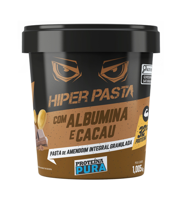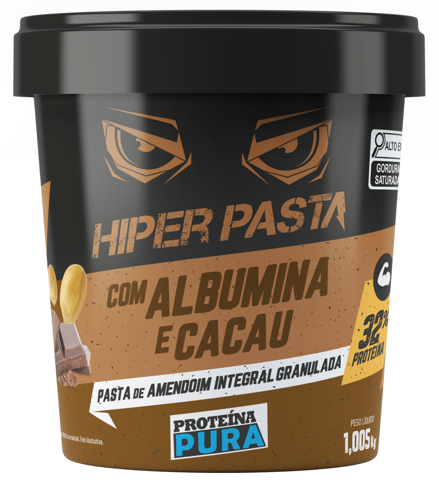 Pasta de amendoim com albumina desidratada, sem adição de açúcar e enriquecido em 30% de proteína.